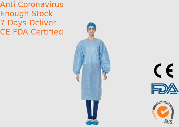 | Vestido quirúrgico de Bule SMS de la prueba disponible de la sangre con los puños hechos punto | |