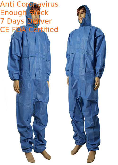 El traje disponible de la bata se diseña principalmente para proteger contra partículas, los líquidos y polvo peligrosos, así que la tela no tejida de los PP/de SMS tiene los funtions de la prueba, del repelente de aceite, de los repulsivos de la sangre, de la corrosión del ácido y del álcali, y de respirable, de ligero, de cómodo resistentes, del polvo flúidos, látex libremente, sin pelusa y no tóxico, no irritando. No reutilizable, fácil vestirse para arriba y sacar.